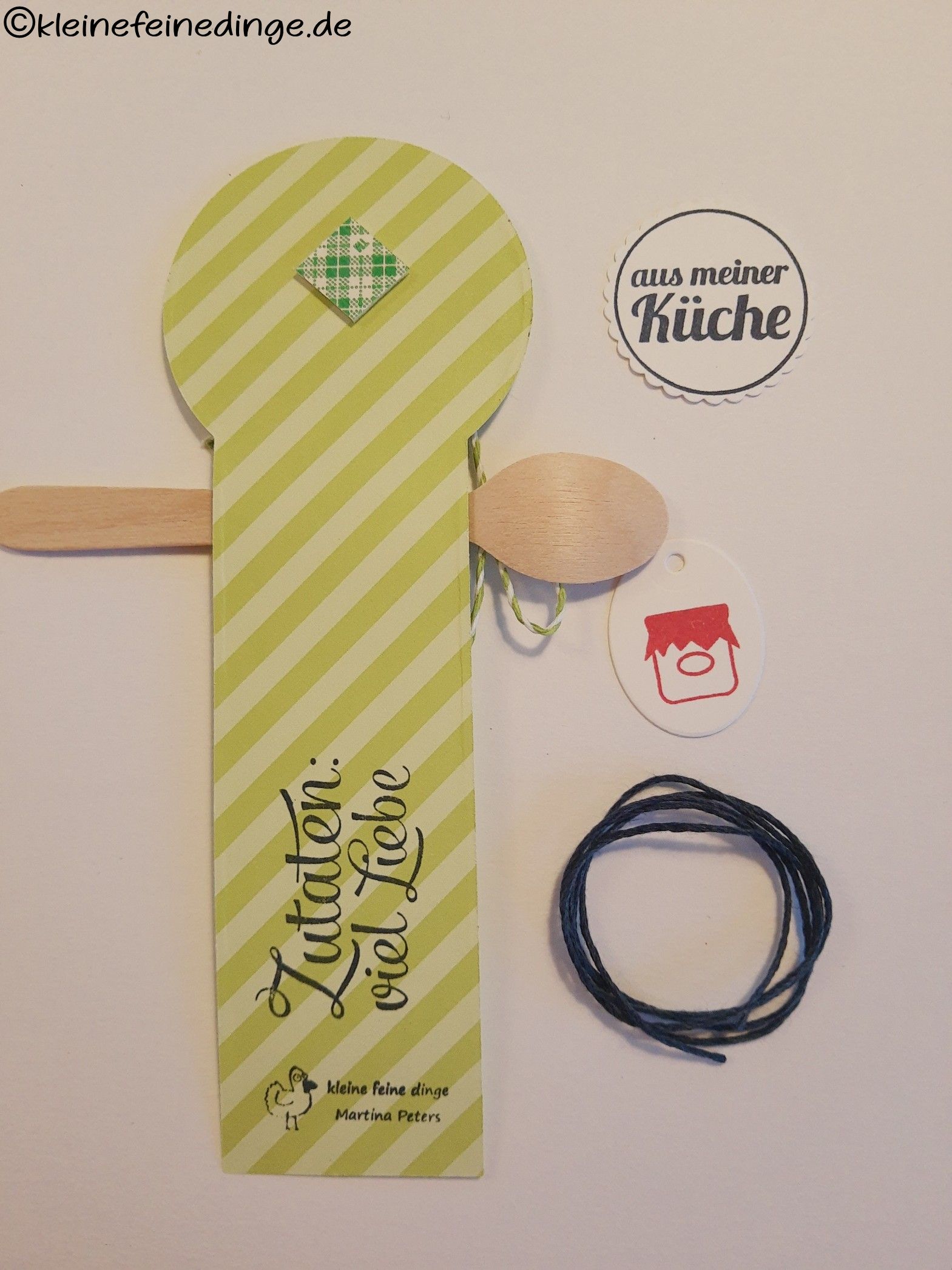 - Ein bereits vorgefertigtes Etikett mit einem kleinen verzierten Bambuslöffel. Auf der Rückseite ist ein 3D-Klebepad angebracht, so dass man das Etikett auf jeden Deckel kleben kann
