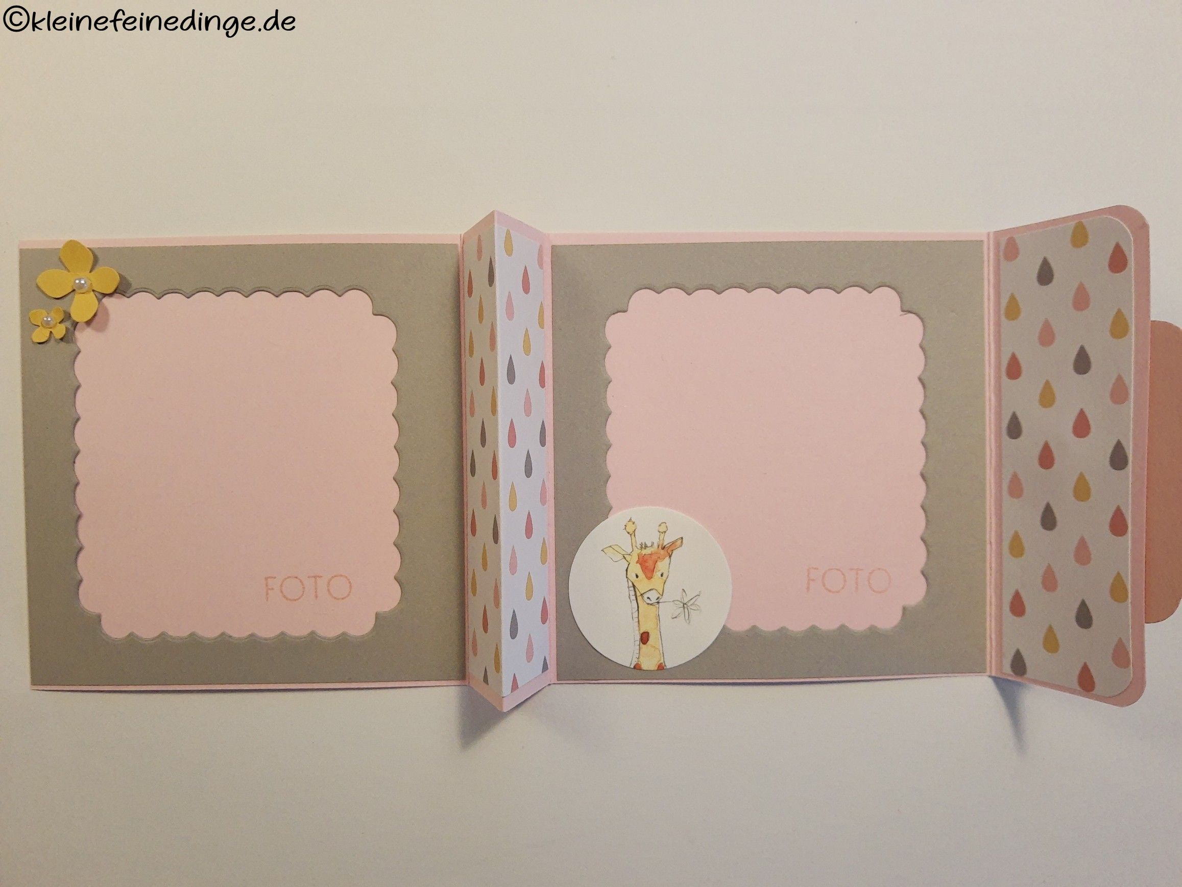 - Zwei Innenflächen für Fotos, jeweils mit dekorativem Wellenrand