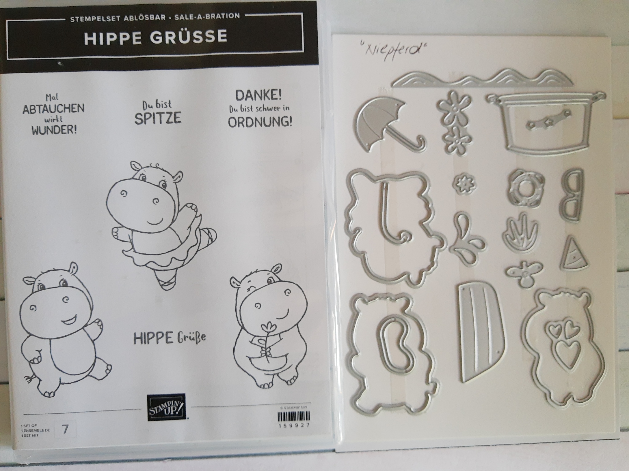 Produkt-Paket: Stempel "Hippe Grüße" + Stanzformen "Nilpferd"